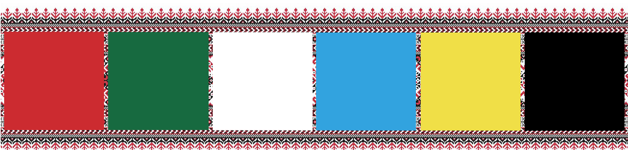 Основната палитра включва червено, зелено, бяло, жълто и синьо, вкл. тъмно синьо.